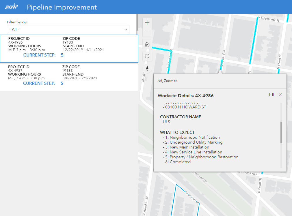 Before pipeline work begins, PGW crews and/or contractors notify residents and businesses in the immediate neighborhood. Parking restrictions will also be posted on impacted streets using standard parking notices.